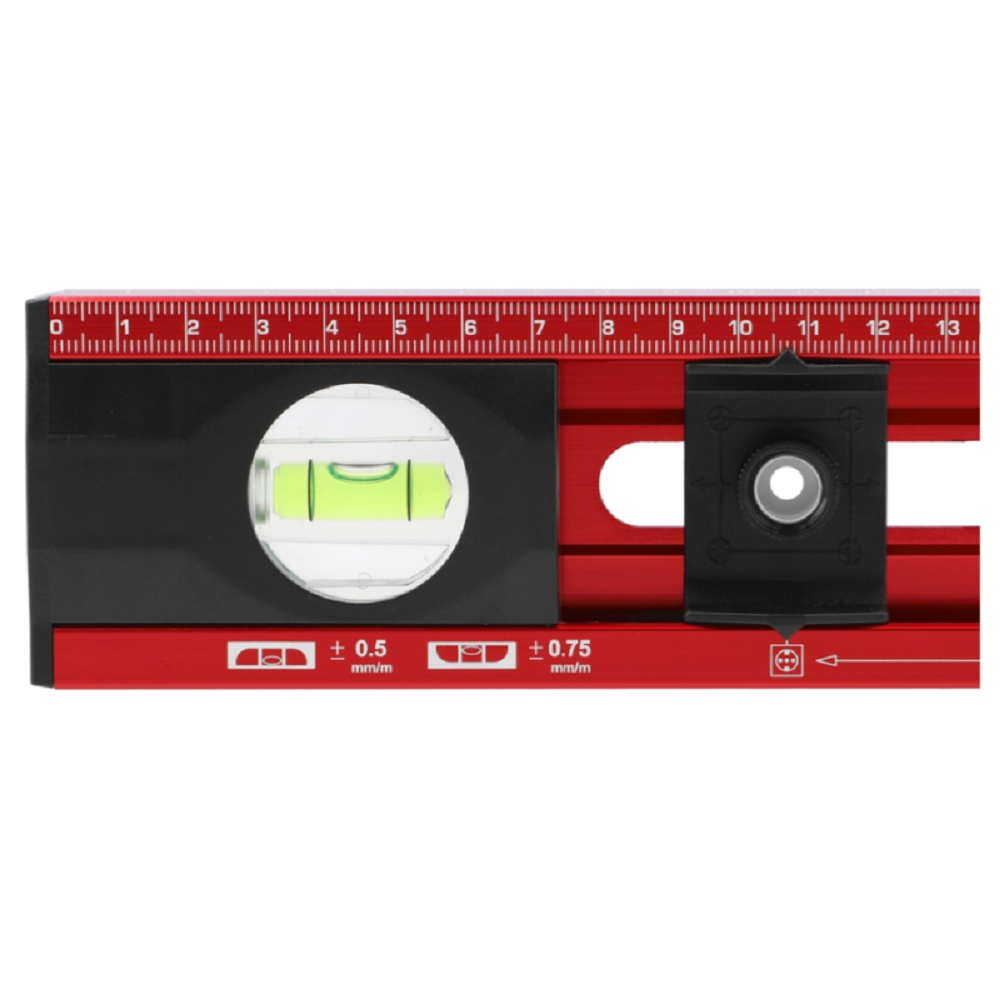 ένα αλφάδι με δυνατότητα μετακίνησης και σήμανσης αποστάσεων χρησιμοποιώντας τέσσερα ρυθμιστικά σήμανσης στην κλίμακα μέτρησης