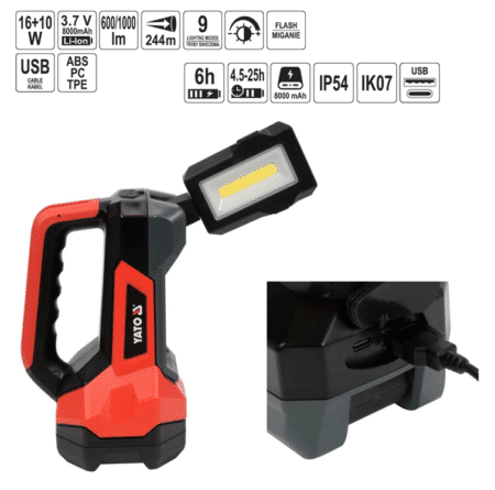 ΦΑΚΟΣ LED ΜΕ ΜΑΓΝΗΤΙΚΗ ΒΑΣΗ 2 ΣΕ 1 YT-08513 YATO