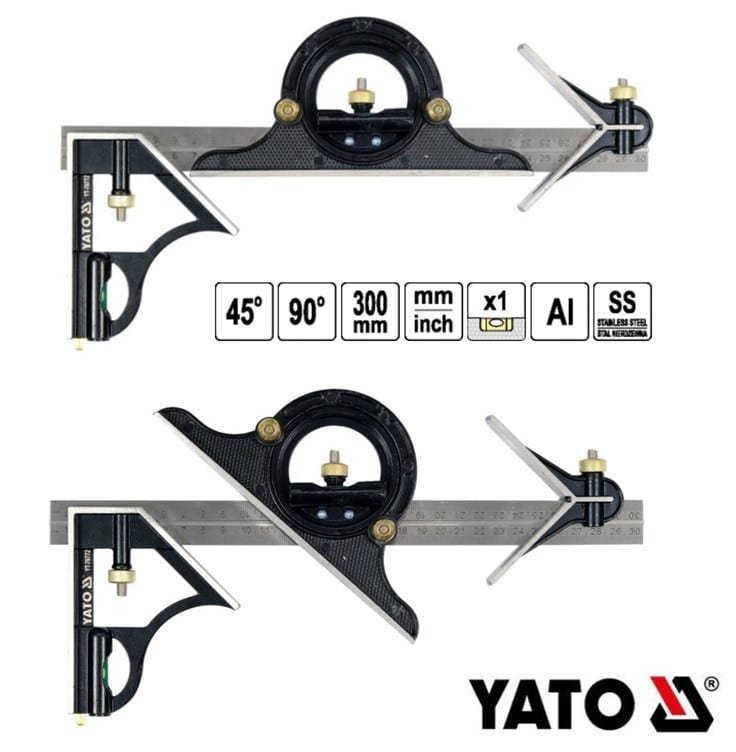 Γωνία 300 mm σε λωρίδα από ανοξείδωτο χάλυβα με αλεσμένη κλίμακα χιλιοστών.