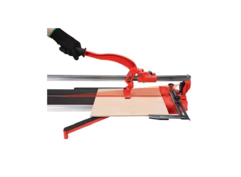 Κοπτική μηχανή με δείκτη λέιζερ, σχεδιασμένη για κεραμικά πλακίδια μέγιστου μήκους 800 mm. Η σταθερή βάση της συσκευής είναι κατασκευασμένη από αλουμίνιο. Το συνδυασμένο μαχαίρι κοπής και ο αποτελεσματικός θραύσης κινούνται σε έναν μόνο ατσάλινο οδηγό /ρουλεμάν μονάδας θραύσης/.