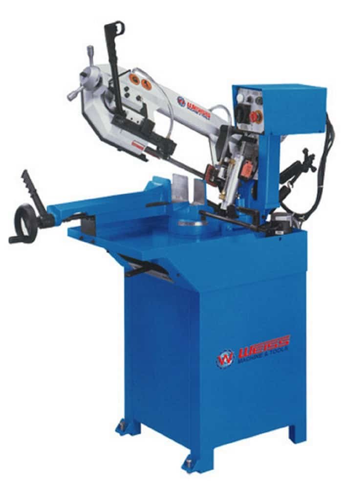 Ανθεκτική υποδομή. Πλήρως εξοπλισμένο μηχάνημα. Αθόρυβη λειτουργία. Πλάκα βάσης και τόξο πριονιού από χυτοσίδηρο. Σταθερό πλαίσιο πριονιού, επομένως αθόρυβη και χαμηλών κραδασμών λειτουργία. Εύκολη στην ανάγνωση κλίμακα για ρύθμιση γωνίας. Στάνταρ με υψηλής ποιότητας διμεταλλική ταινία πριονιού. Ρυθμιζόμενη τάση ταινίας πριονιού στην μπροστινή πλευρά μέσω χειροτροχού. Ρυθμιζόμενο στοπ υλικού για σειριακή εργασία.