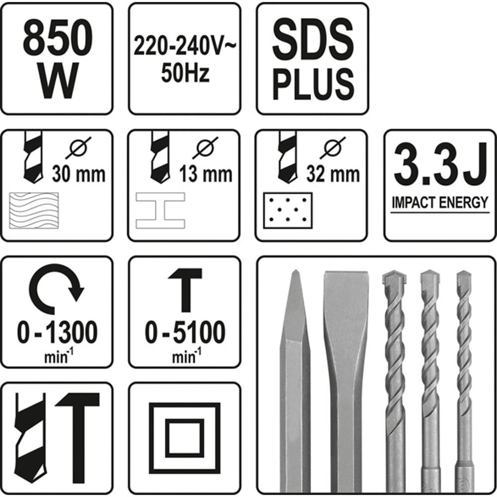 ΠΙΣΤΟΛΕΤΟ SDS PLUS 850W/+ ΤΣΟΚ 3,3J YT-82122