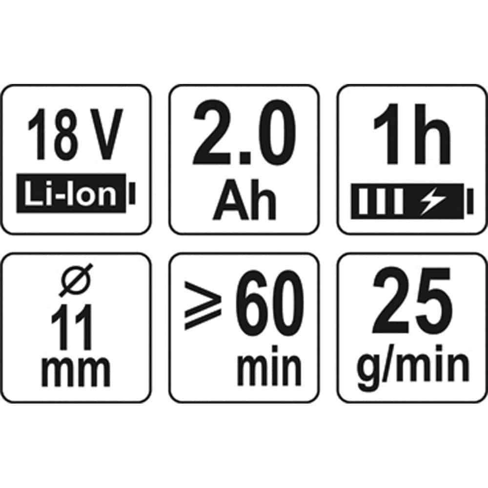 ΠΙΣΤΟΛΙ ΘΕΡΜΟΚΟΛΛΑΣ ΜΠΑΤΑΡΙΑΣ 18V 1X2Ah YT-82854 ΥΑΤΟ