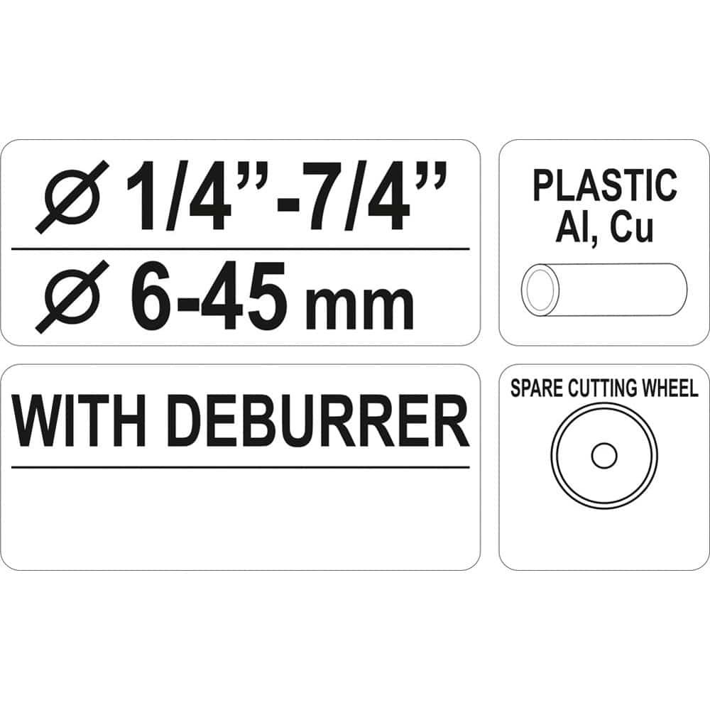 Κόπτης σωλήνων για σωλήνες διαμέτρου 6 ~ 45mm (1/4 “~ 1-3 / 4”).