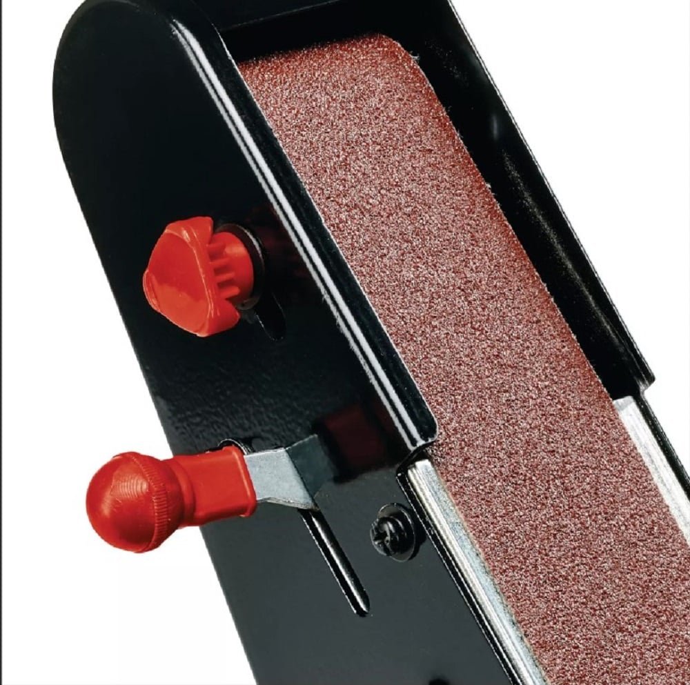 - Ο τροχός και ταινιολειαντήρας Einhell TC-US 350 διαθέτει ιμάντα λείανσης και λειτουργία δίσκου λείανσης με ισχύ 350 watt. Ο συνδυασμός της λείανσης προσφέρει πολύ υψηλό ρυθμό αφαίρεσης γρεζιών, ιδανικός για μεγαλύτερες ξυλουργικές εργασίες. Χάρη στις διαφορετικές ρυθμίσεις λείανσης και τα μεγέθη κόκκων, το ταινιολειαντήρας μπορεί να χρησιμοποιηθεί ξεχωριστά. Το προστατευτικό κάλυμμα, το οποίο είναι κλειστό στο πλάι, διασφαλίζει την ασφάλεια κατά τη χρήση, όπως και το γυαλί προστασίας από σπινθήρα, το οποίο μπορεί να ρυθμιστεί χωρίς εργαλεία. Η σταθερή και χωρίς στρέψη κατασκευή σε συνδυασμό με τις μεγάλες, ρυθμιζόμενες επιφάνειες εργασίας είναι ιδανική για διάφορες εφαρμογές – επίσης για την επεξεργασία μεγάλων και μεγάλων τεμαχίων ξύλου. Τέσσερα ελαστικά πόδια μειώνουν τους κραδασμούς και προσφέρουν σταθερή και ασφαλή βάση. Το πεδίο παράδοσης περιλαμβάνει έναν χοντρόκοκκο τροχό λείανσης και έναν ιμάντα λείανσης.