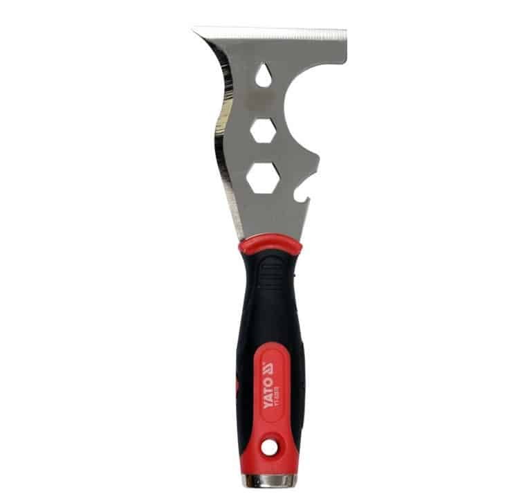 Ξύστρα με διαμορφωμένες άκρες για καθαρισμό, με ανοιχτήρι μπουκαλιών και μπροστινή λεπίδα. Στη μέση, τρύπες για την αφαίρεση των καρφιών και δύο προφίλ για το σφίξιμο των βιδών.